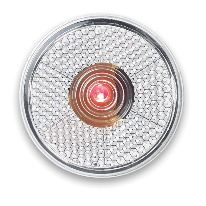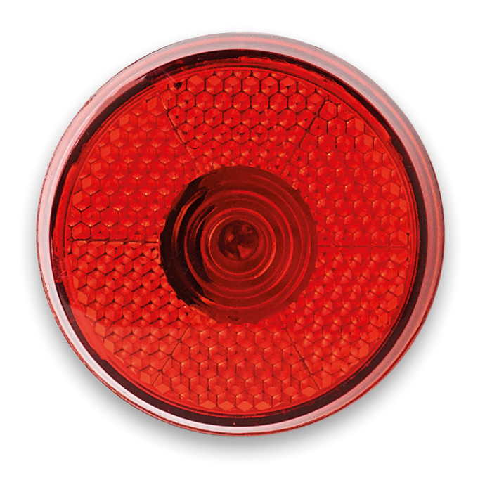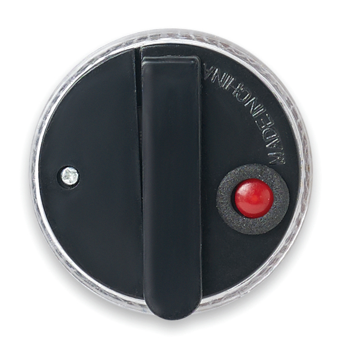 Round blinking red LED light with back clip. 2 AG13 included.
