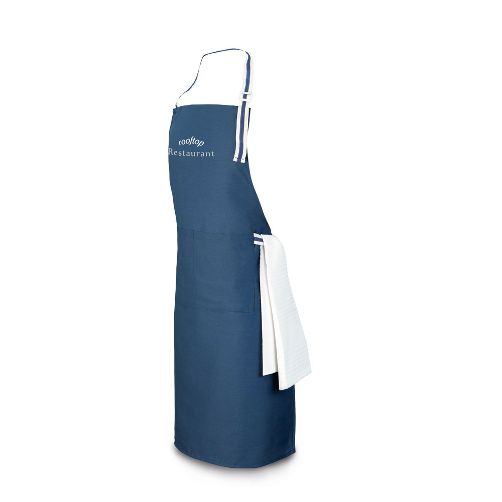 Adjustable cotton and polyester apron (150 g/m²) with 2 frontal pockets. 650 x 850 mm | Pocket: 170 x 180 mm