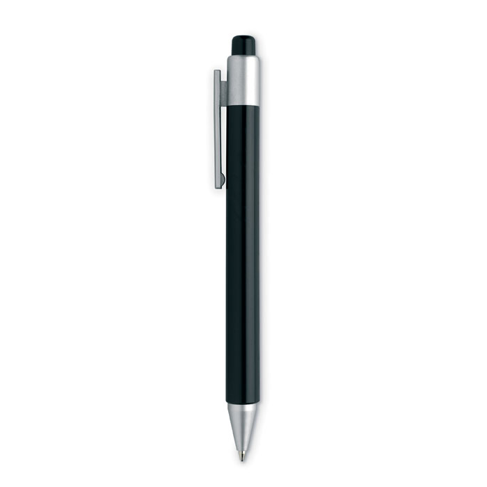 Push button ball pen in ABS with satin coloured barrel and frosted fittings. Black ink