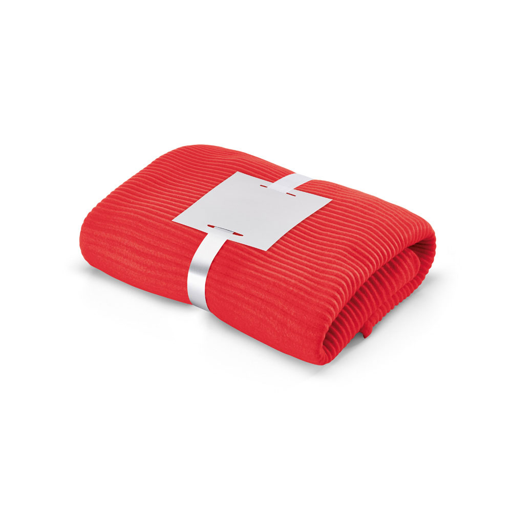 Polar fabric blanket (250 g/m²) with satin ribbon and card for personalization. 1600 x 1300 mm | Cardboard: 160 x 140 mm