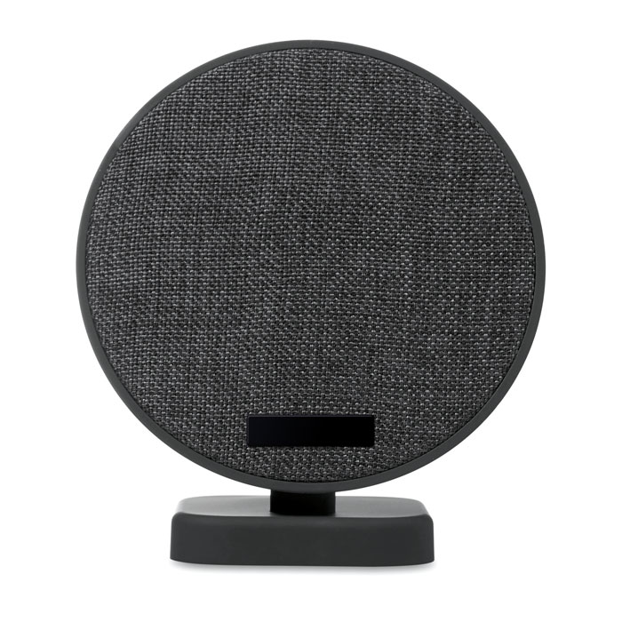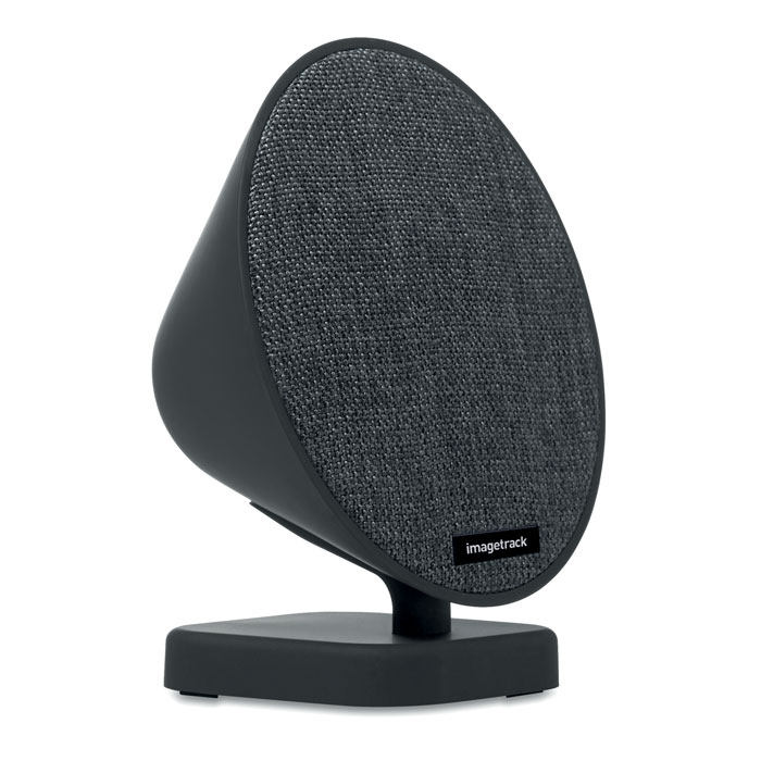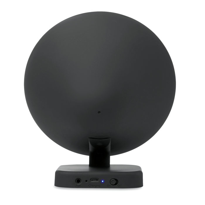 4.1 Bluetooth speaker (2 x 3W) with built-in amplifier. Rechargeable 400 mAh lithium-ion battery. Includes USB charging cable. This item includes a black aluminum plate ideal for your logo.