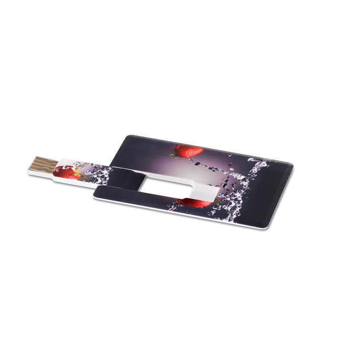 Credit card size and shape USB memory stick in ABS. The flat surface of the product allows a full colour printing of your logo and pictures.