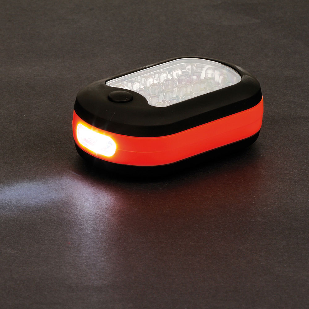 Flashlight with 27 LEDs with wrist strap and magnet. Requires 3 AAA batteries (not included). 62 x