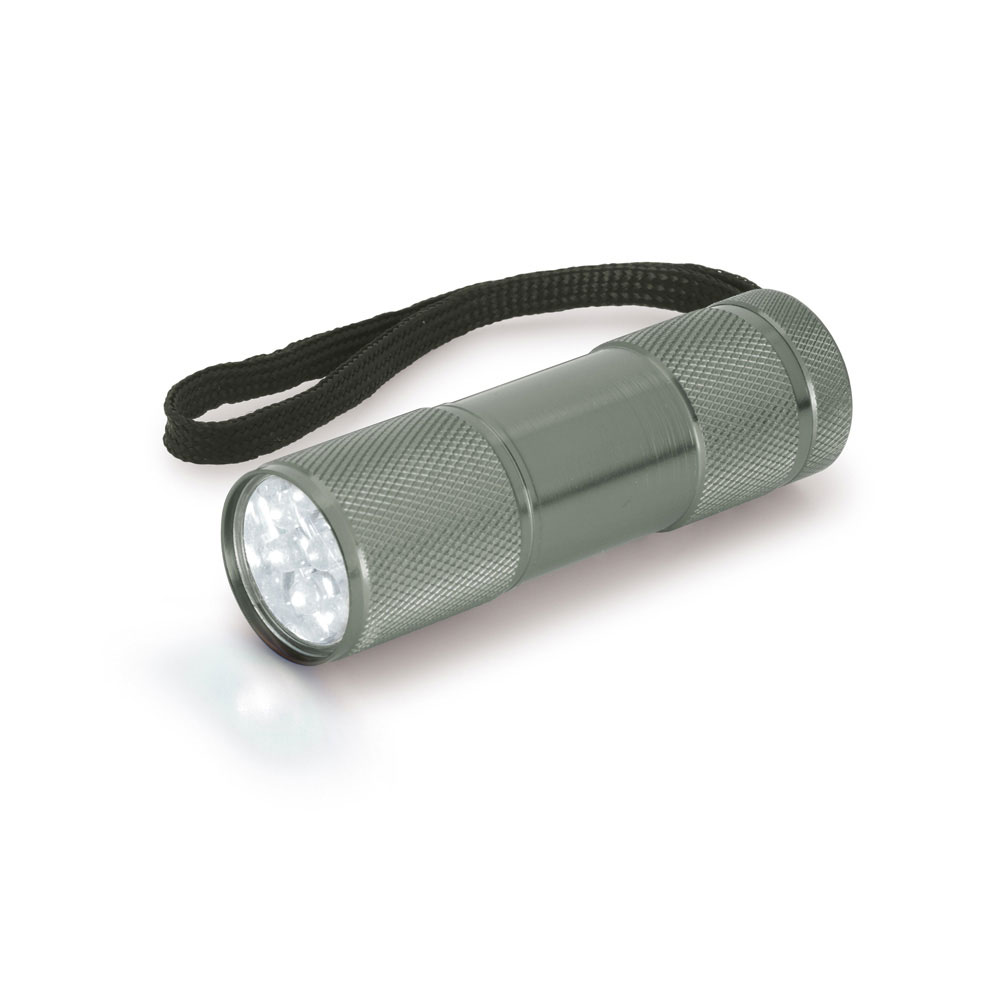 FLASHY. Flashlight Aluminum 9-LED flashlight that includes 3 AAA batteries. ø26 x 90 mm