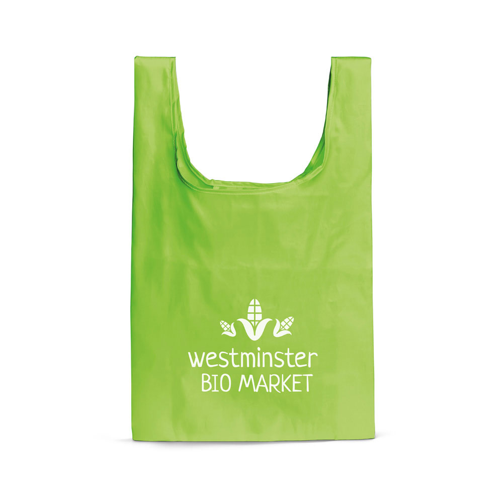 210D foldable bag with 70 cm handles and inner pocket. This product is supplied unfolded. Folded: 112 x 145 x 20 mm | Open: 370 x 400 x 100 mm