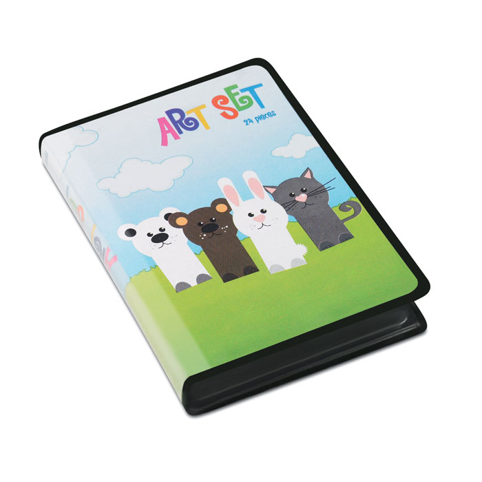 LEONARDO – Compact artist set for children in PVC plastic, including 24 essential pcs for drawing and painting.