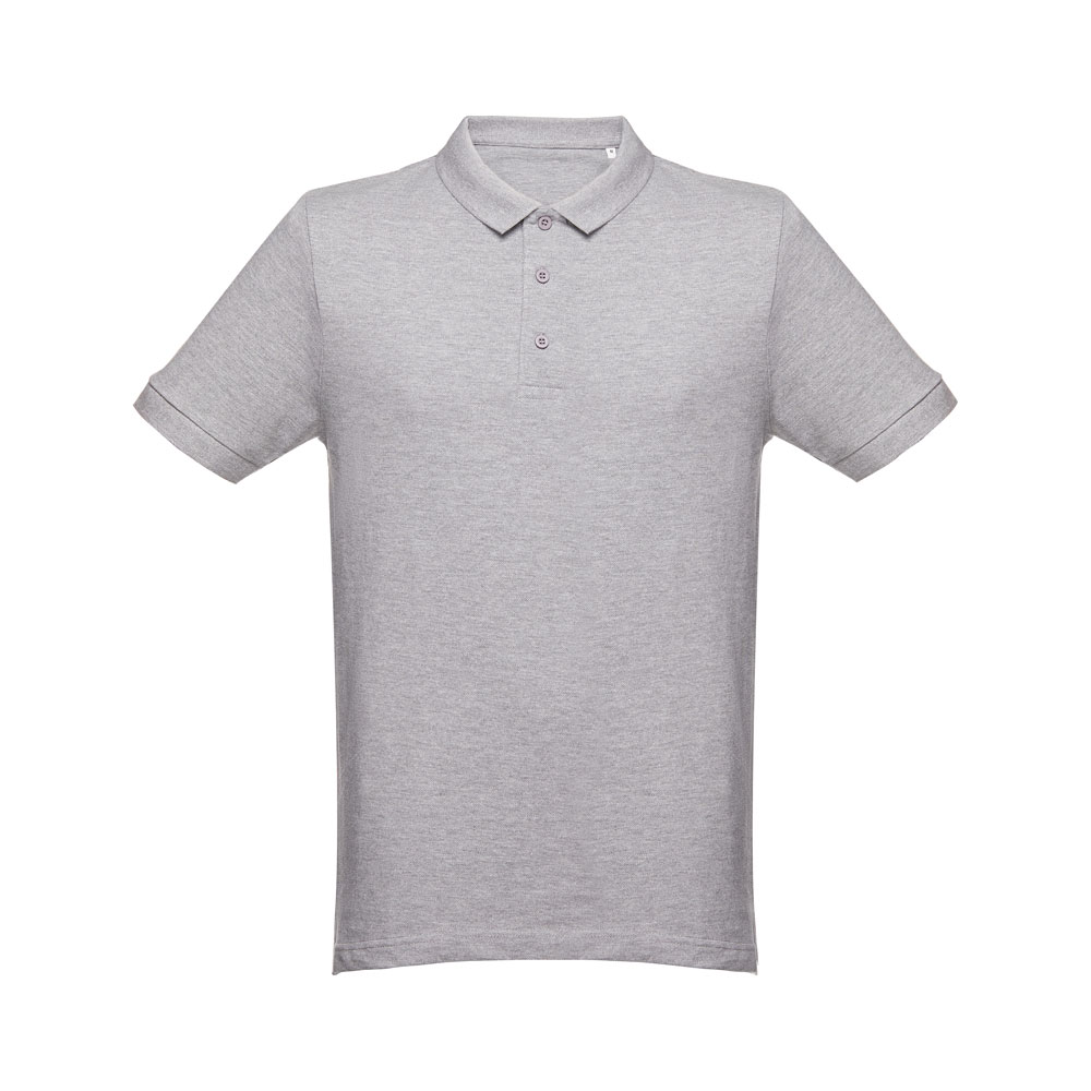 100% cotton pique men’s polo (240 g/m²). Colour 83: 85% cotton / 15% viscose. Rib collar and sleeves, rib reinforcement on collar and placket reinforced with 3 coloured buttons. Bottom with side openings. Extra button on inner seam. Cut and sewn. Sizes: S, M, L, XL, XXL