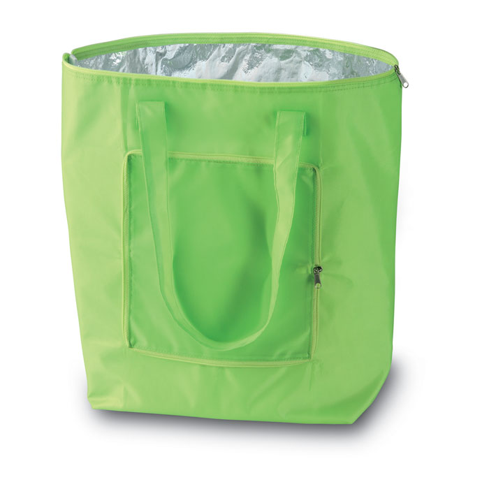 Convenient foldable cooler bag. 210T polyester with aluminium foil inside.