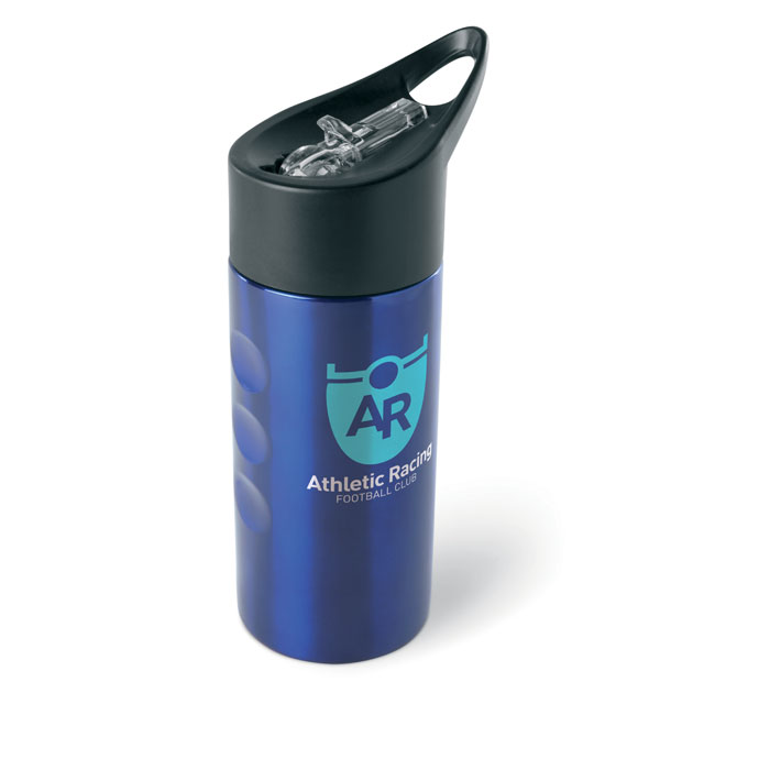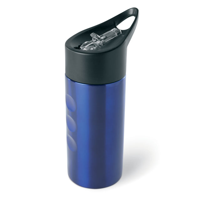 Single wall stainless steel drinking bottle with foldable transparent straw on the closing top. 500 ml capacity.