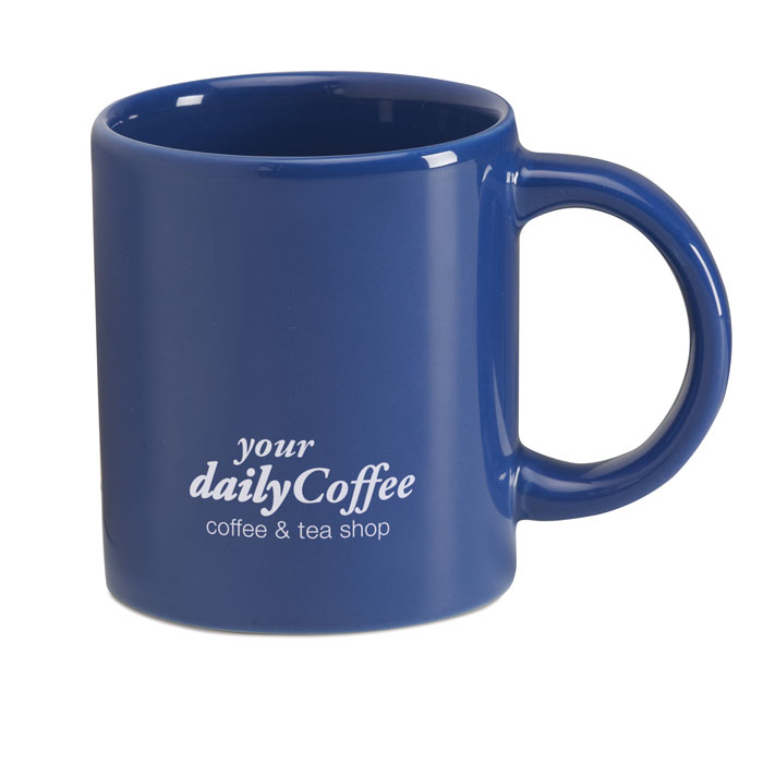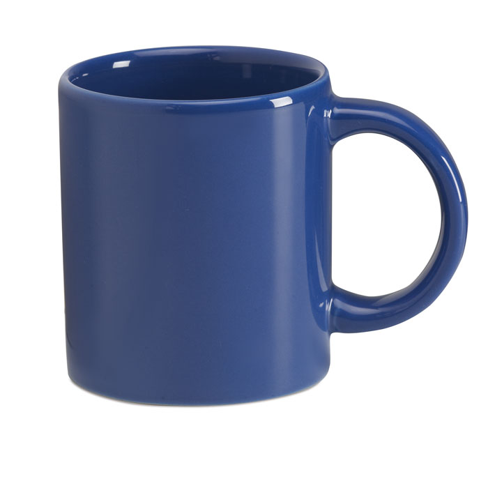 Glazed stoneware coloured mug. Capacity 200 ml. Bulk packing. Pad printing is not dishwasher safe.