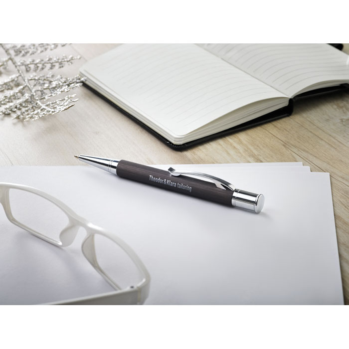 Aluminium ball pen in brushed barrel presented in elegant grey gift box. Blue ink.