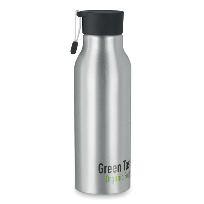 Aluminium drinking bottle 500 ml single wall with silicone strap