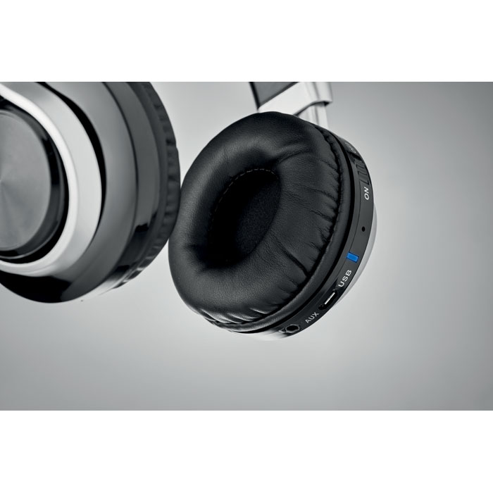 4.2 Bluetooth headphones in ABS. Rechargeable Li-Pol battery 300 mAh. Hands free function. Playing time approx. 6 hours. Includes jack plug cable and micro UBS charging cable. Operating range: 10m.