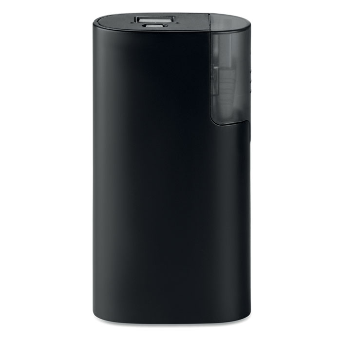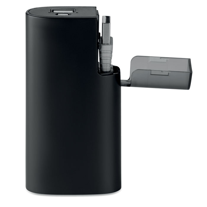 Power bank in 3000 mAh with integrated cable. Capacity for smartphone use, output current DC5V/1A. Includes Type C connector.