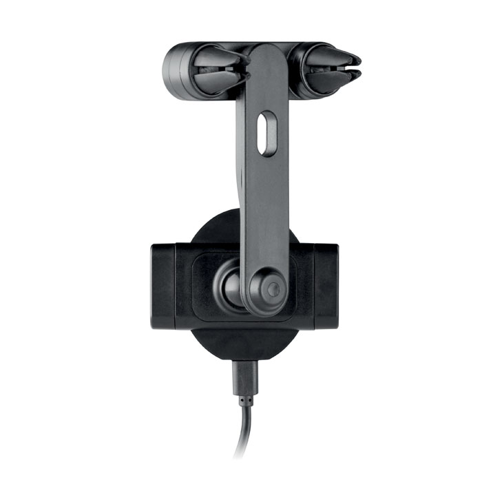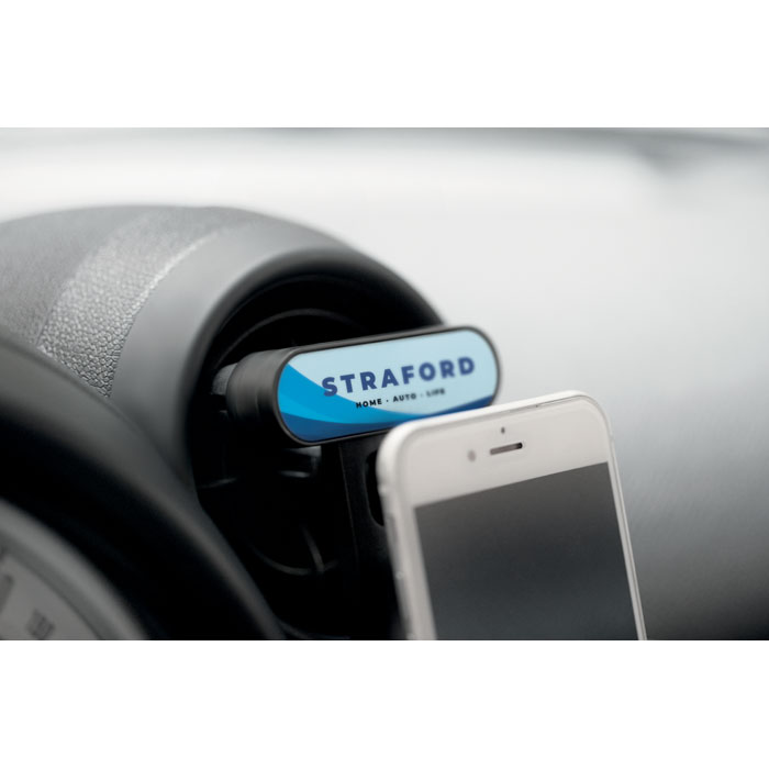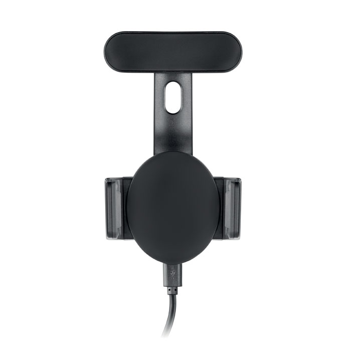 Car wireless charger mount phone holder. 360 degree rotation. Connect device, place smartphone on it to begin charging. Output: DC 5V/1.0A. Compatible latest androids, iPhone® 8, X and newer. Ideal for full colour personalisation