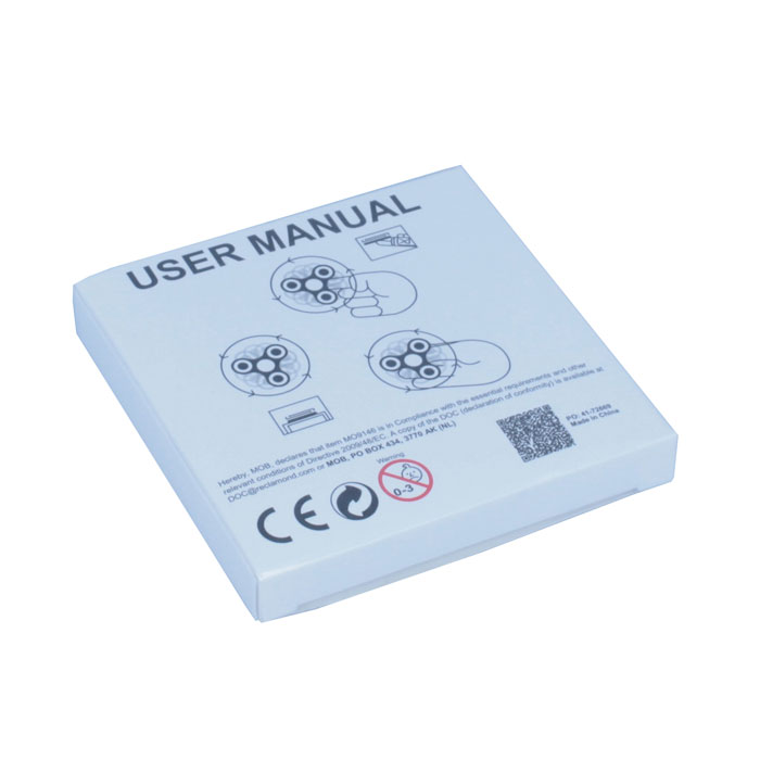 Anti-stress hand spinner device in ABS. Helps to keep your hands busy and your mind focused. Box included. Item complies with European standard EN 71 CE, so meets all safety requirements for toys.